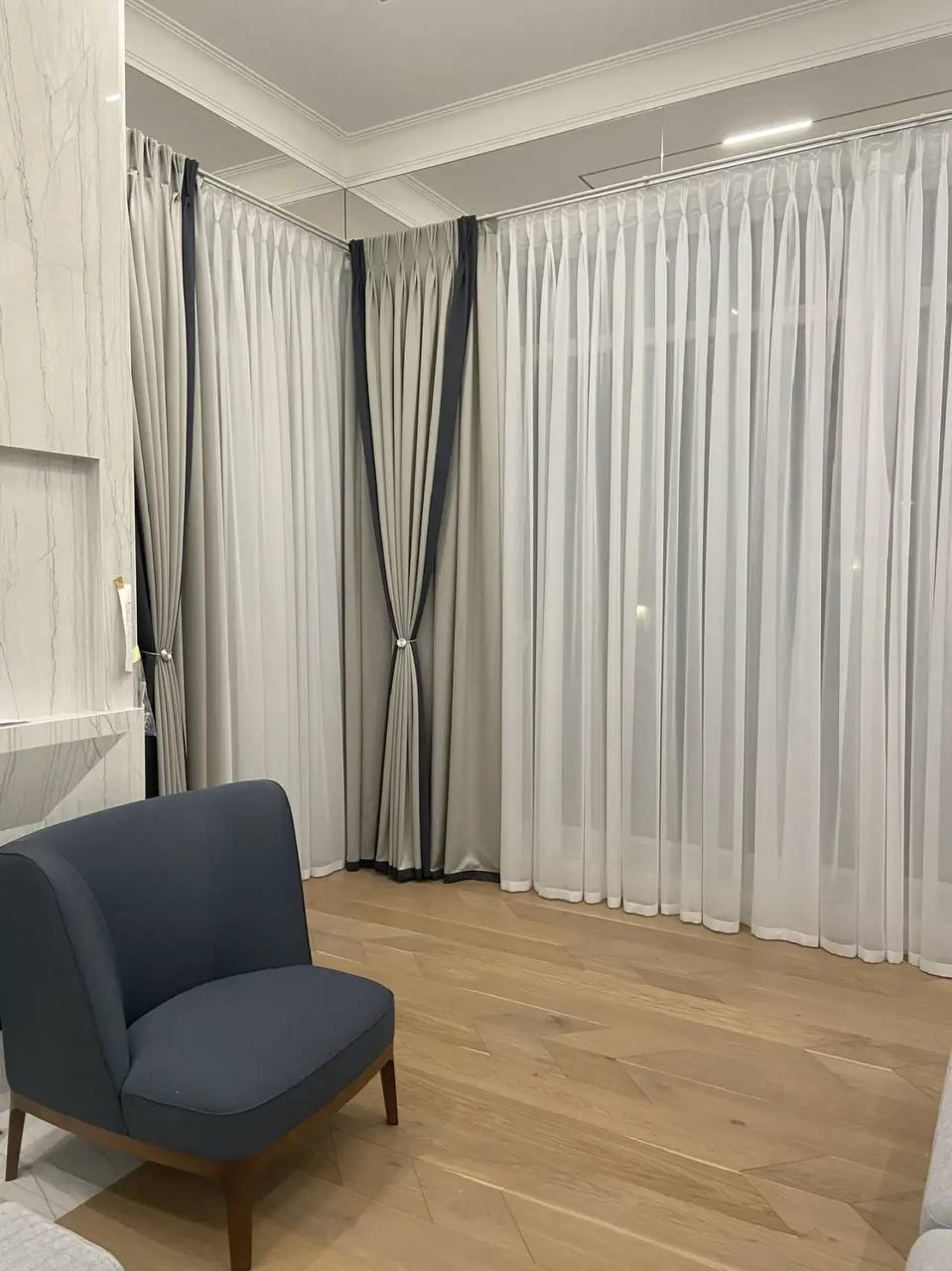 - Пошив штор в собственном ателье;